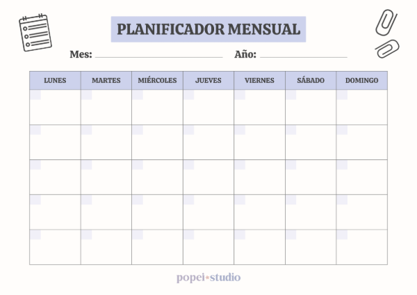 Planificador Mensual Perpetuo